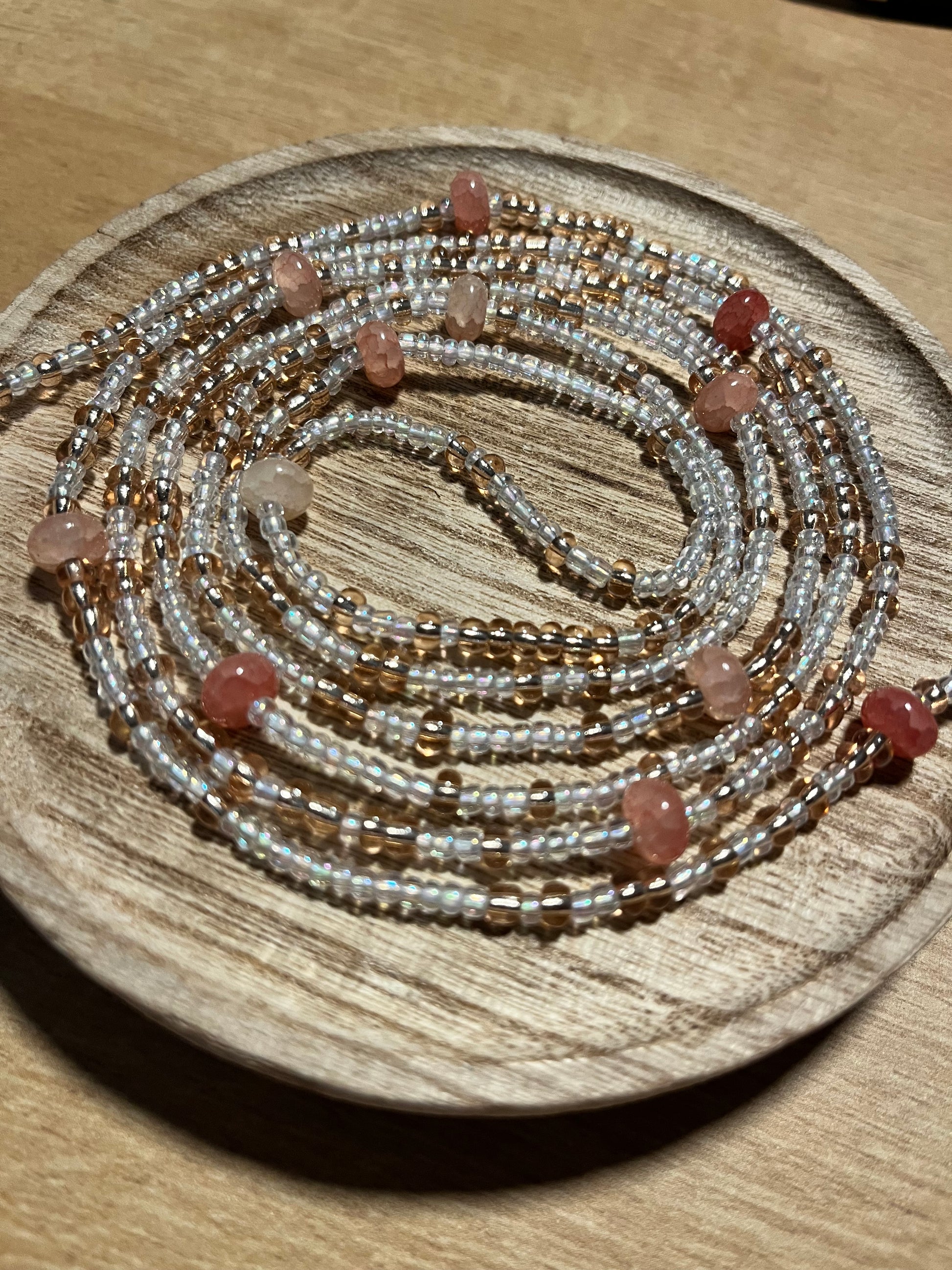 Blush! Waist Jewelry made with Rose Quartz Beads strung among glass seed beads for a magical look and feel!
