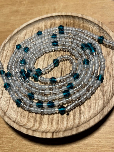 Frosted Czech and deep Turquoise crystal Waist Jewelry! Beautifully hand strung glass beads in a variety of colors. Adorn your waist today with some beautiful jewelry!