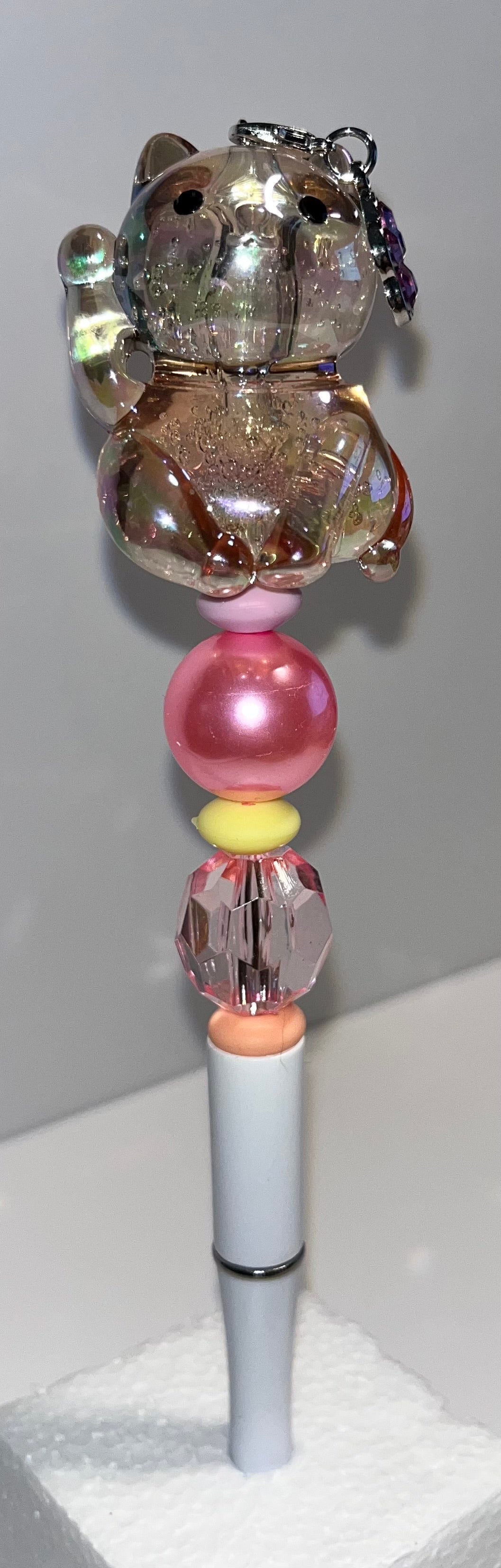 Hand Beaded Beckoning Neko Cat! Iridescent orange and purple crystal clear Neko Cat with Charm on head! Various colors! beautiful selection of hand-beaded pens are made with quality materials and are very durable. Colors and selections may vary. Each pen comes pre-filled with black ink. You will receive one extra black ink refill for the future.