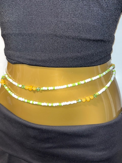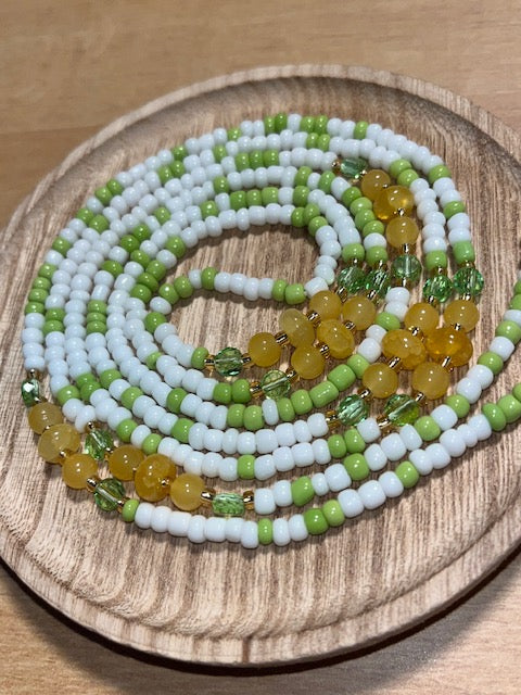 Waist Jewelry! Beautifully hand strung glass beads in a variety of colors with natural stone beads too. Adorn your waist today with Pina Colada!