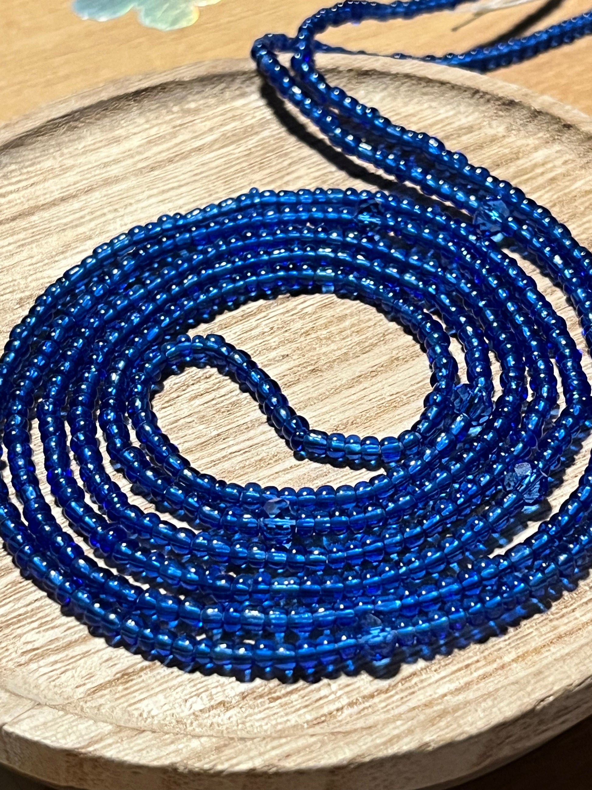 Waist Jewelry! Beautifully hand strung glass beads in blue with blue crystal beads. Adorn your waist today with Tru Blu!